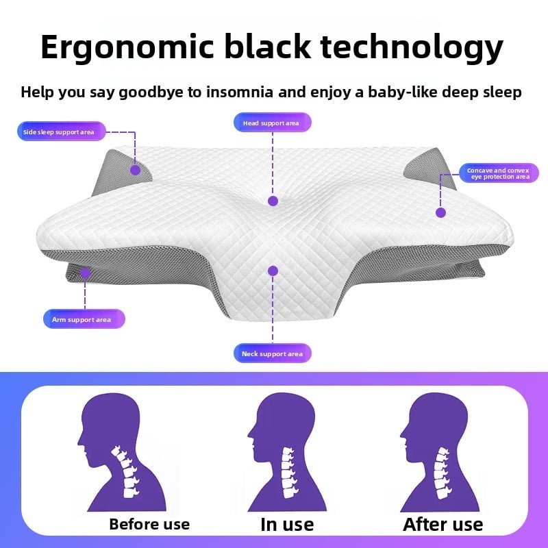 Gris, negro, blanco (forma de mariposa); blanco (núcleo de la almohada + funda interior).