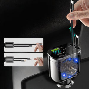 Compatibilidad universal: Compatible con todo tipo de vehículos (entrada de 12 V-24 V) y dispositivos (Apple, Android, etc.).