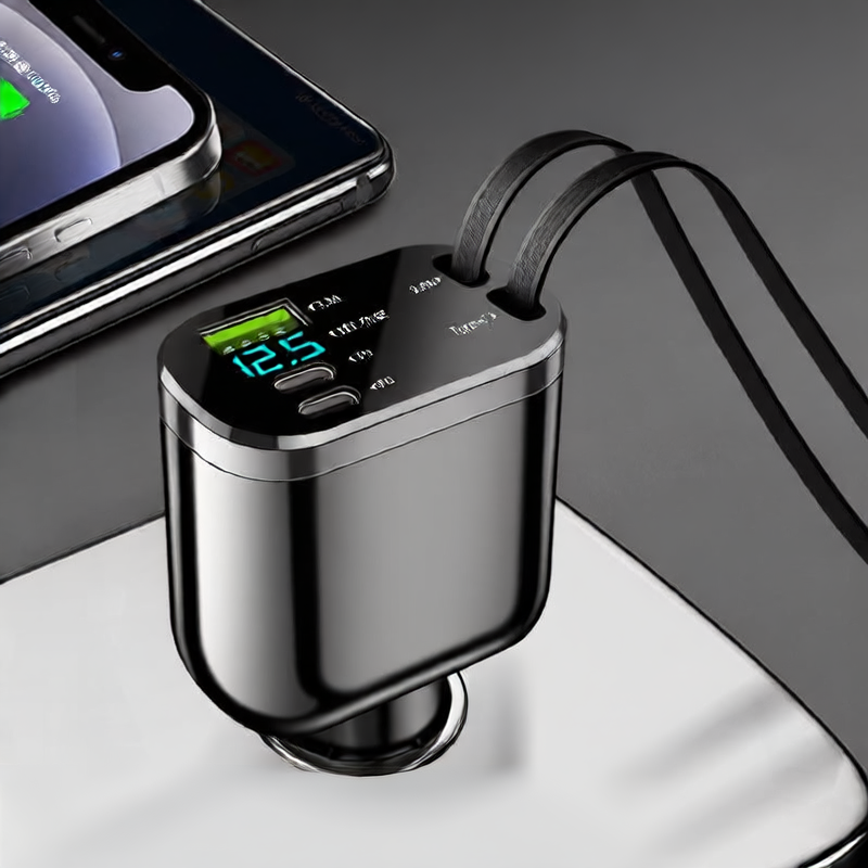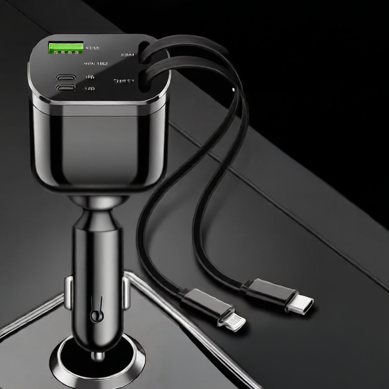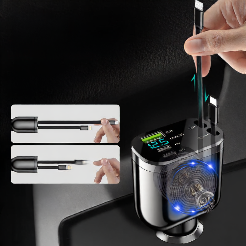 Cargador de coche plegable con doble USB y carga rápida PD, 100 W de potencia para dispositivos Apple/Android